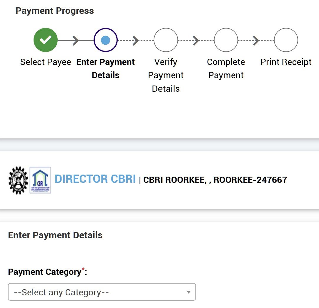 Please search for the keyword 'DIRECTOR CBRI' on the registration page and follow the steps shown in the screenshot, selecting the appropriate registration payment category.